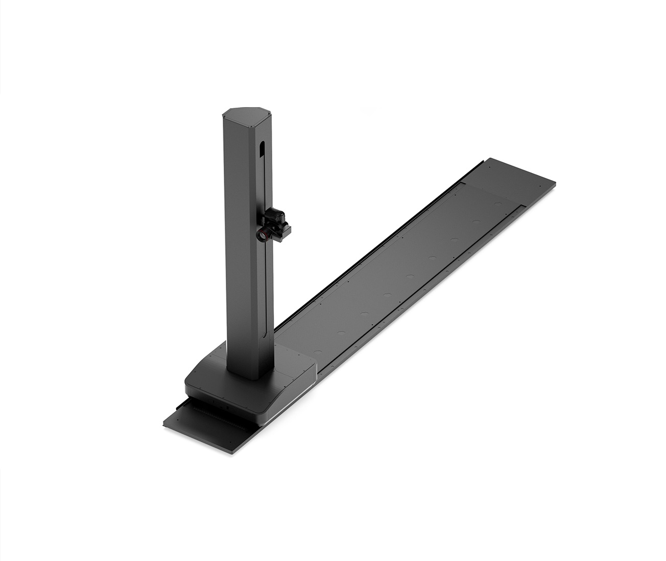 '전동형 스탠드'는 카메라 상하높이 이동, 기울기 틸트 및 렌즈 Zoom 확대/축소 수준을 자동으로 제어합니다. 총 4.5m의 직선형 레일위에서 카메라와 피사체 사이의 거리는 규격화되어 제어할 수 있습니다.